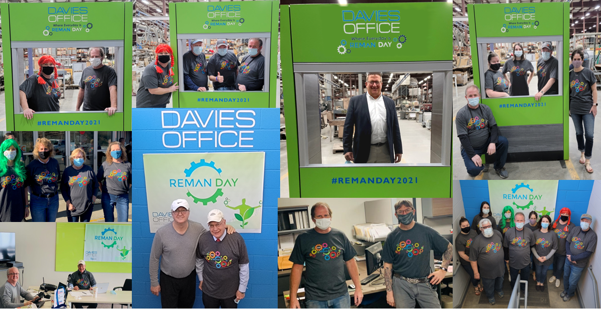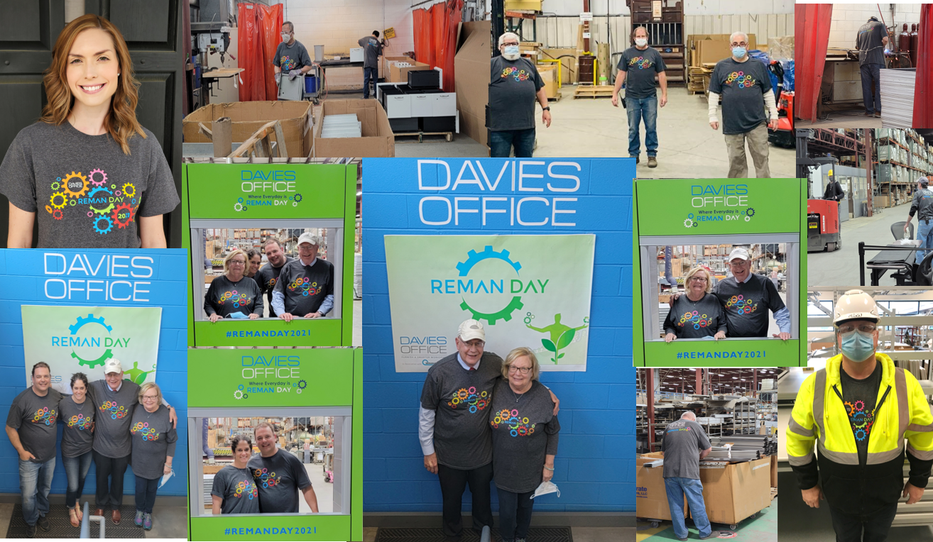 What is Global Remanufacturing (Reman) Day? #RemanDay is an opportunity to celebrate the economic and environmental benefits of remanufacturing, create a public awareness for remanufacturing and advance the remanufacturing industry through hosted events and workforce development initiatives.  Our wonderful staff had lots of fun taking pictures in the photo booths around the production area and warehouse. Doug Pilgrim, our National Business Development Manager, did a fantastic job of presenting (not once, but twice!) the Davies philosophy and case studies, and how we’ve accommodated clients requests through use of remanufactured furniture.